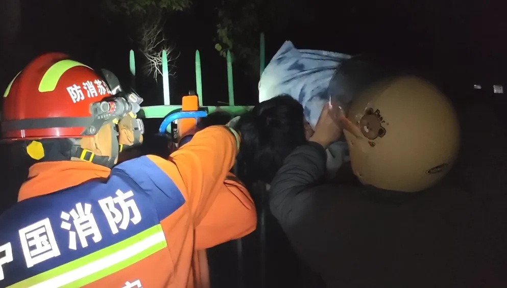 男生被困現場。圖源:淮安消防