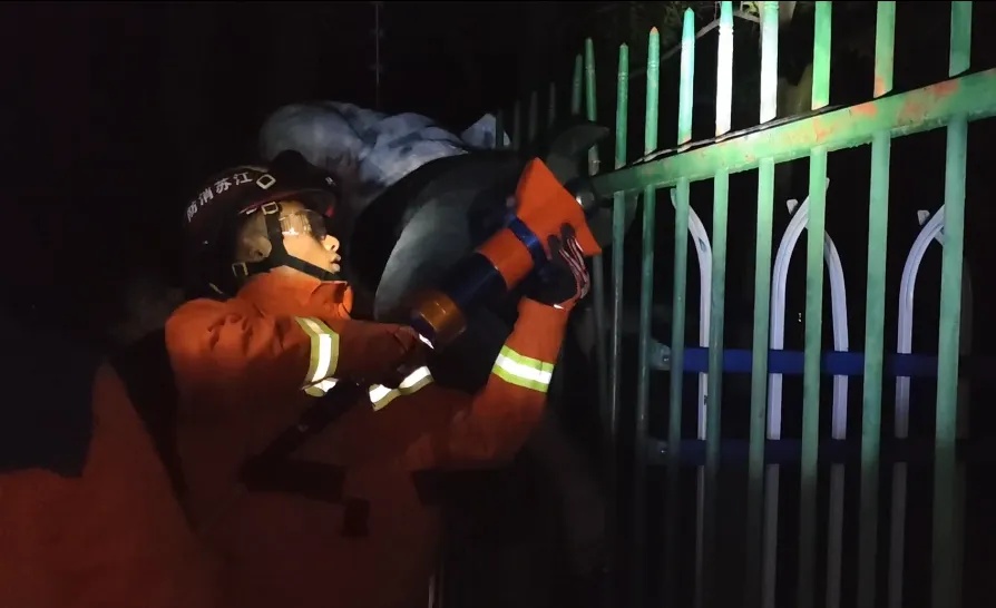 消防員進行破拆。圖源:淮安消防