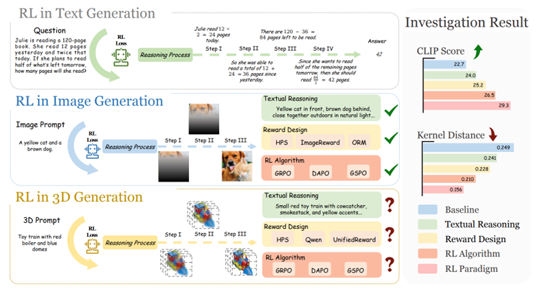 關鍵發現:RL正在幫3D生成模型“學會思考”