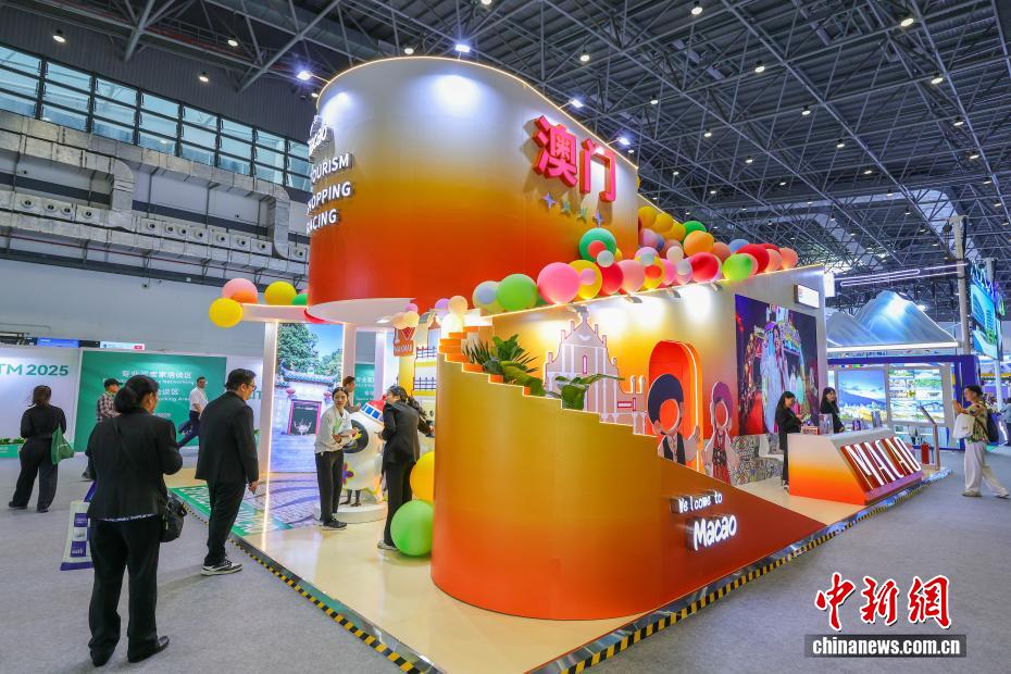 12月19日,澳門展館亮相展會現場。當日,2025中國國際旅游交易會在海南海口開幕。據了解,本屆旅交會以“你好!中國”為主題,展覽總面積6.5萬平方米,設置國內展區、國際展區、陽光海南展區、文旅融合展區、入境旅游消費展區等5個展區,吸引超過100個國家和地區的旅游機構、旅行商參展,計劃邀請1000名國際及港澳臺地區旅行商、300名國內參展單位及重點企業代表參會。