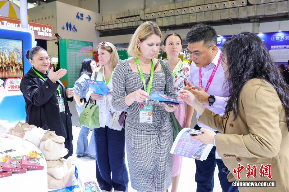 12月19日,外籍客商在海南館與參展商洽談交流。當日,2025中國國際旅游交易會在海南??陂_幕。據了解,本屆旅交會以“你好!中國”為主題,展覽總面積6.5萬平方米,設置國內展區、國際展區、陽光海南展區、文旅融合展區、入境旅游消費展區等5個展區,吸引超過100個國家和地區的旅游機構、旅行商參展,計劃邀請1000名國際及港澳臺地區旅行商、300名國內參展單位及重點企業代表參會。