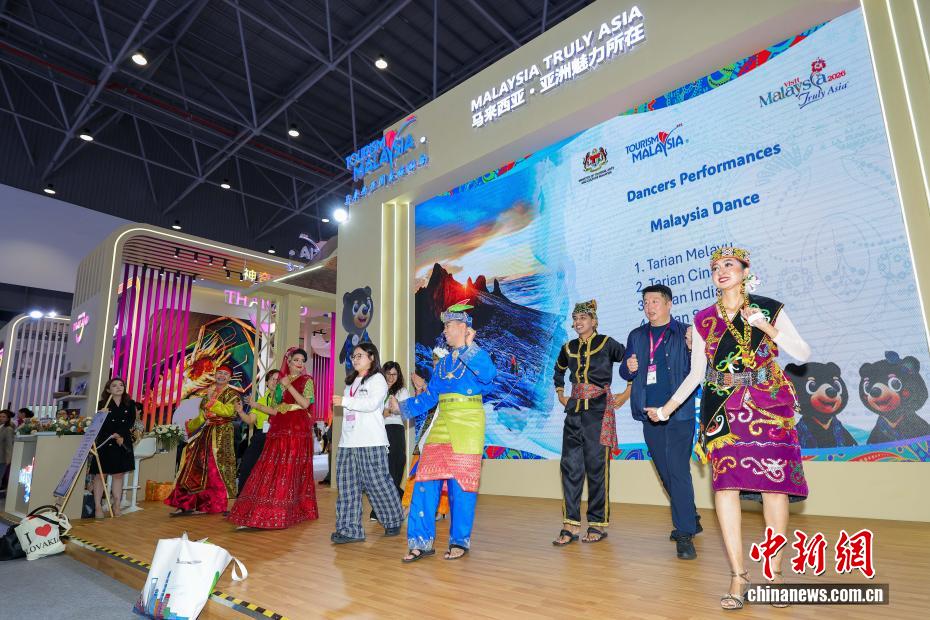 12月19日,馬來西亞展館的舞蹈演員與參觀者一起跳舞互動。當日,2025中國國際旅游交易會在海南??陂_幕。據了解,本屆旅交會以“你好!中國”為主題,展覽總面積6.5萬平方米,設置國內展區、國際展區、陽光海南展區、文旅融合展區、入境旅游消費展區等5個展區,吸引超過100個國家和地區的旅游機構、旅行商參展,計劃邀請1000名國際及港澳臺地區旅行商、300名國內參展單位及重點企業代表參會。