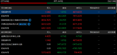 平潭發展(000592)今日跌7.48%,成交額65.33億元,換手率22.62%,盤后龍虎榜數據顯示,深股通專用席位買入1.34億元并賣出4955.41萬元。長城證券(002939)深圳華為稼先路凈買入1.36億元,金融街證券上海河南南路凈買入9749萬元。國信證券浙江互聯網分公司凈賣出1343萬元。東方財富(300059)拉薩路席位分別凈賣出975萬元、859萬元。