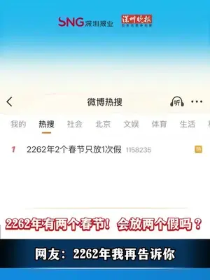 12月18日,話題 #2262年2個春節只放1次假#再沖上熱搜一。