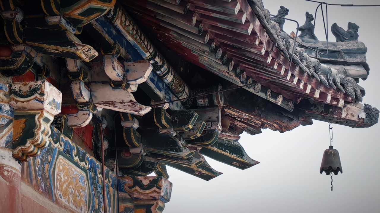 佛前供桌刻滿龍紋,殿角懸著明鑄鐵鐘,鐘身《華嚴經》銘文在陰雨天會泛出幽藍銹跡。