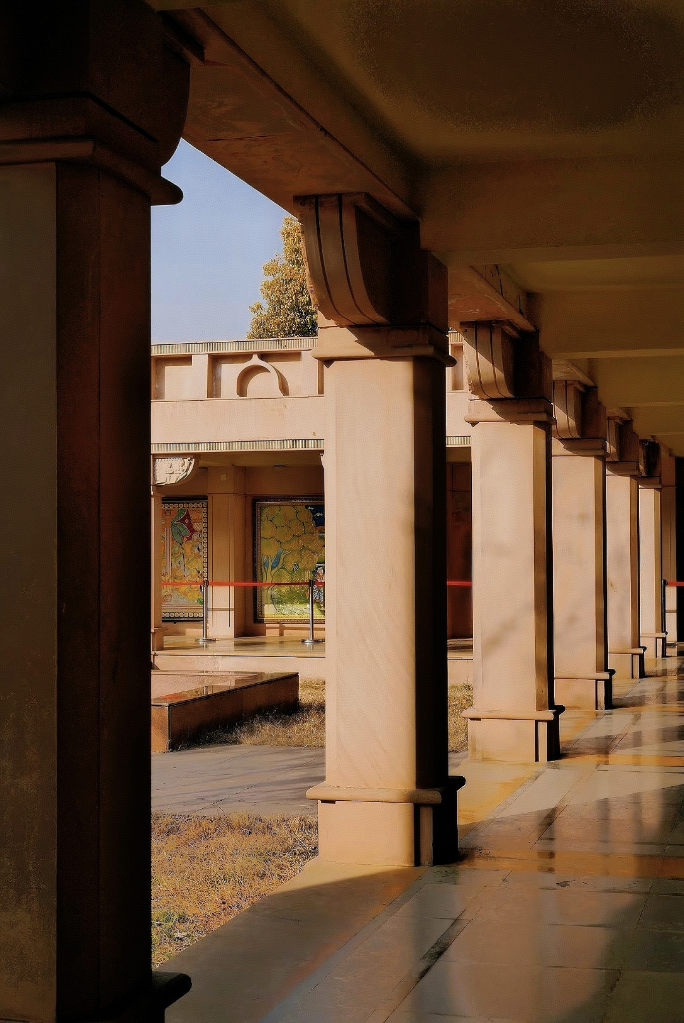 回廊 石柱 刻有佛本生故事,石材與工藝均由 印度 本土提供。