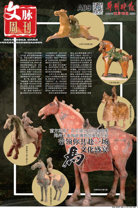 鄭州大象陶瓷博物館館長、此次展覽策展人何飛表示,比起單一的文字,一件件生動的馬展品,是“活”的歷史教材,能讓觀眾直觀地感受到漢代馬的雄渾、唐代馬的華貴,從而理解不同歷史時期的社會風貌與審美情趣。此次展覽不僅將向大眾講述一次關(guān)于中國精神、中國審美和中國故事的綜合敘事,也希望觀眾透過這些珍貴的文物與圖像,在辭舊迎新之際,感受中華民族如駿馬般奔騰不息的生命力、驍勇與智慧,迎接一個生機勃勃的新年。