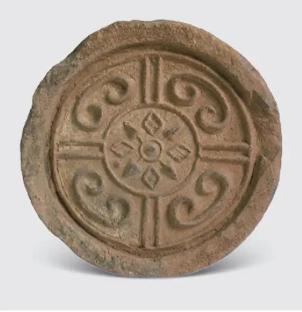 該吉祥物身上的紋樣——山云紋,在漢代比較流行,主要用于瓦當(dāng)上。如上圖所示,山云紋瓦當(dāng)十分別致,實際上可以對切為兩個山云紋瓦當(dāng),可以說是由戰(zhàn)國半瓦當(dāng)向圓瓦當(dāng)進(jìn)化的可貴標(biāo)本。