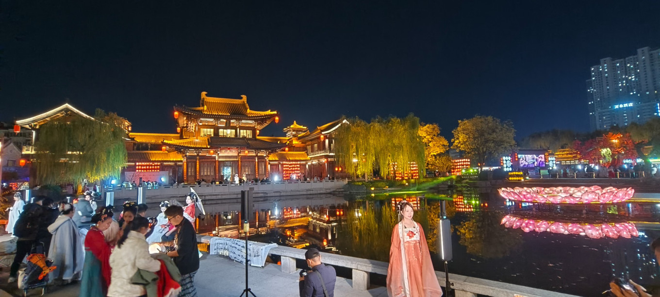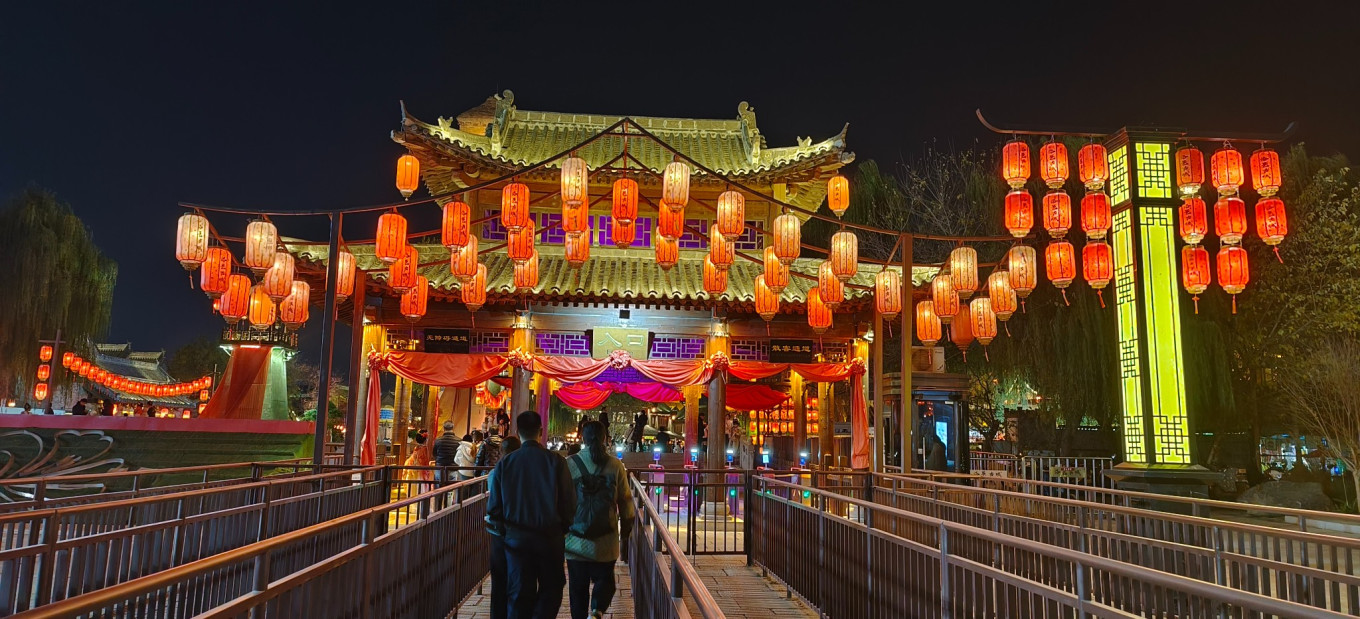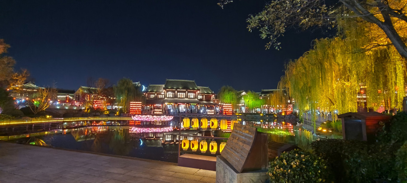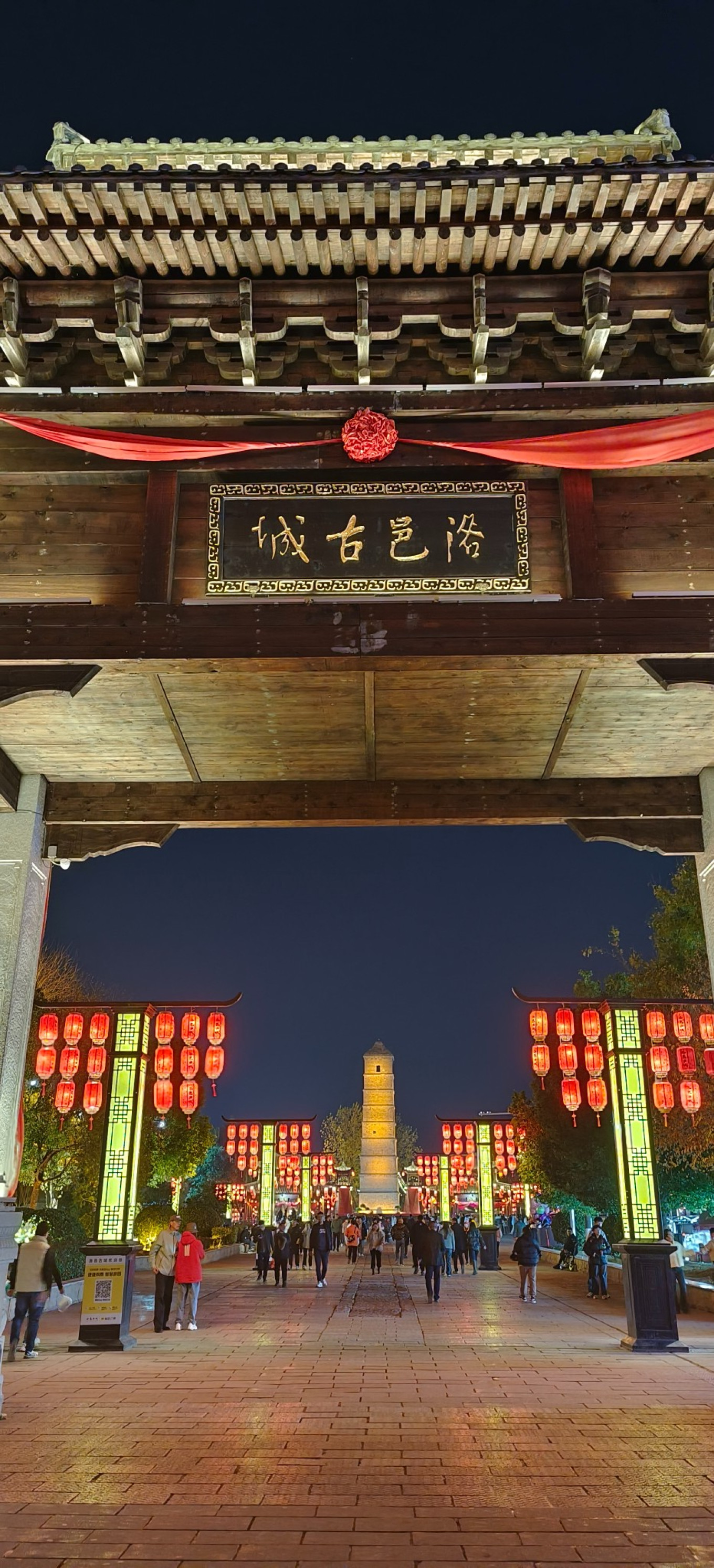 洛邑古城景區位于 河南 省 洛陽 市老城區,被譽為“中原渡口“。離應天門等一眾景區有一點點距離,不過真的是不遠,雖然不需要門票,不過我進去的時候門口會有工作人員讓你關注洛邑古城的某音公眾號才放你進去,可見景區的推廣力度真的是不小。