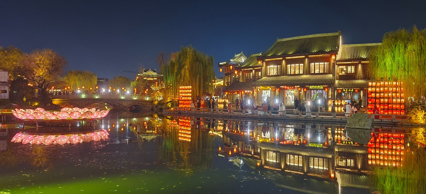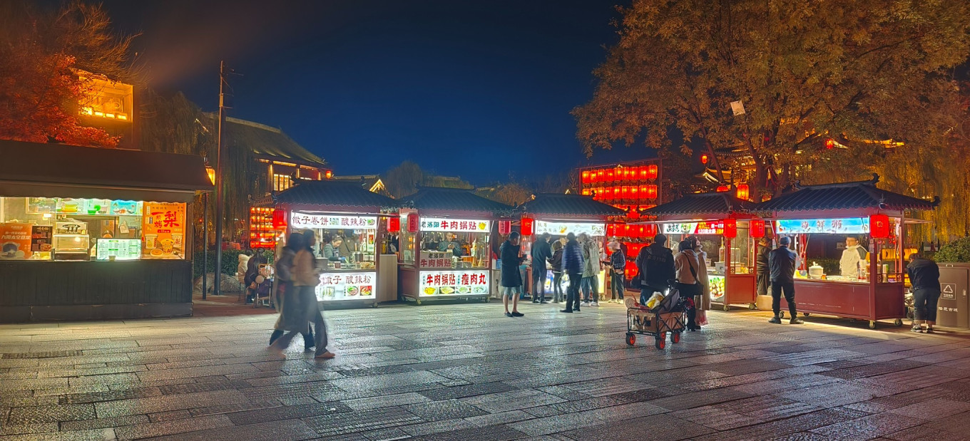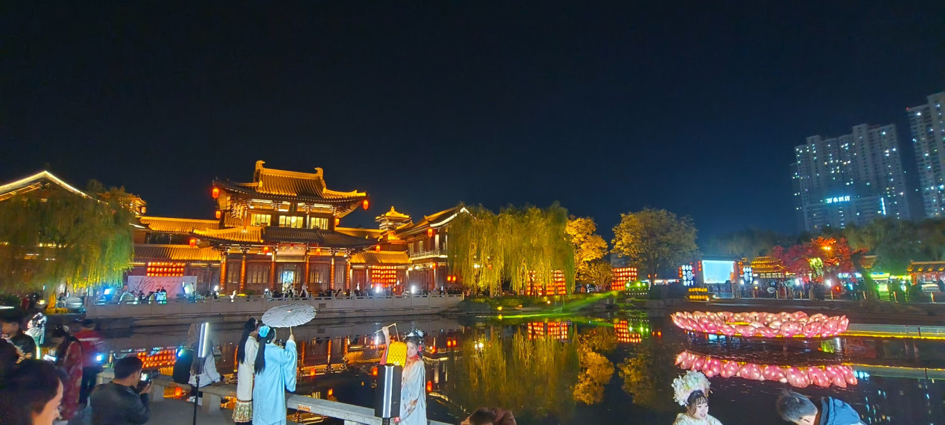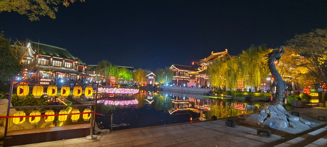 洛邑古城景區位于 河南 省 洛陽 市老城區,被譽為“中原渡口“。離應天門等一眾景區有一點點距離,不過真的是不遠,雖然不需要門票,不過我進去的時候門口會有工作人員讓你關注洛邑古城的某音公眾號才放你進去,可見景區的推廣力度真的是不小。