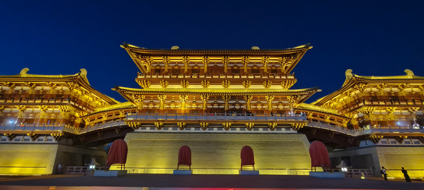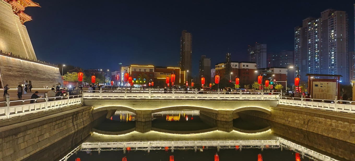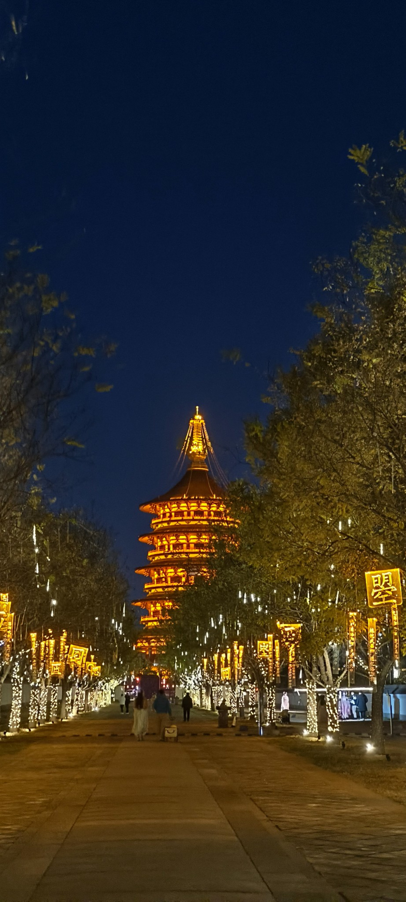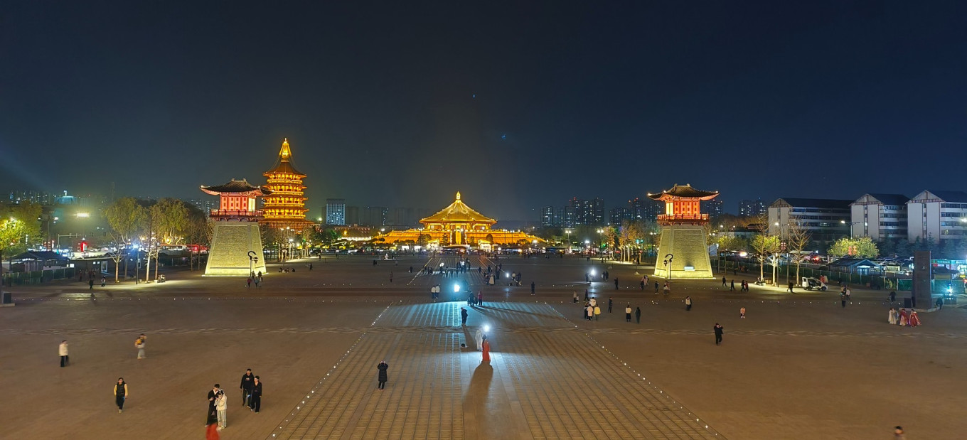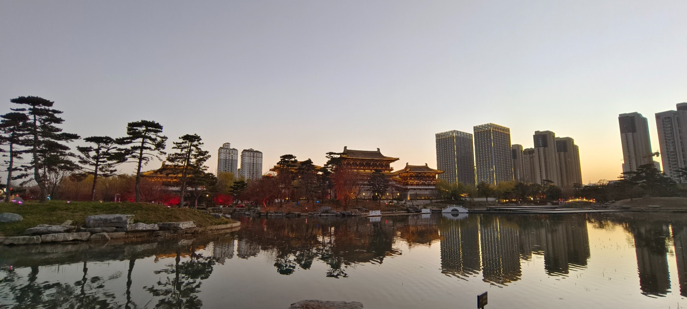落日余暉,天逐漸暗了下來, 九州 池乃至整個 洛陽 古城區內的建筑即將迎來它們的高光時刻。