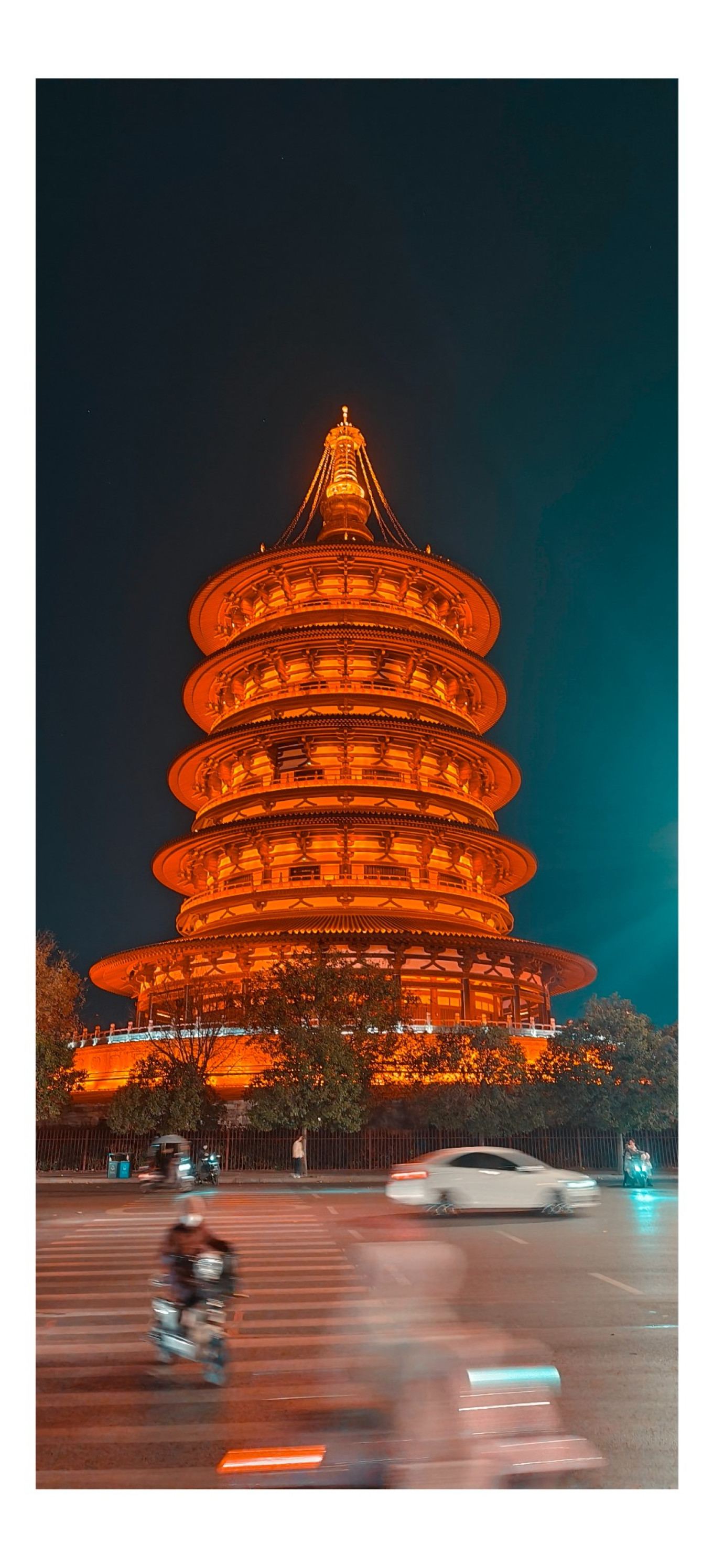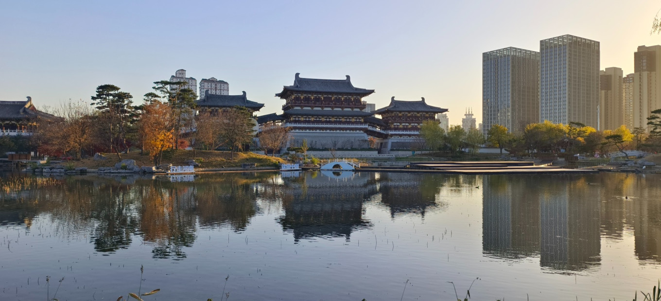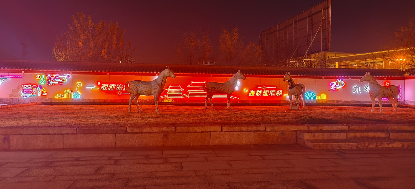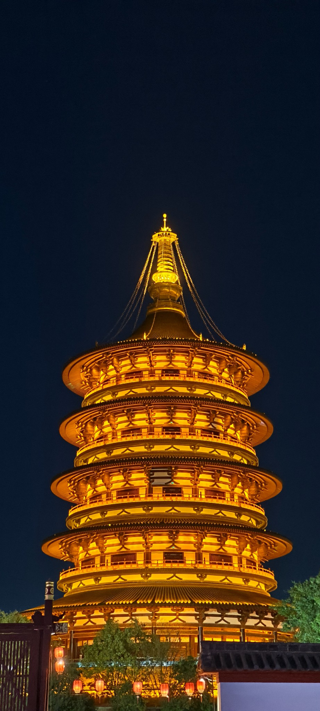 落日余暉,天逐漸暗了下來, 九州 池乃至整個 洛陽 古城區內的建筑即將迎來它們的高光時刻。