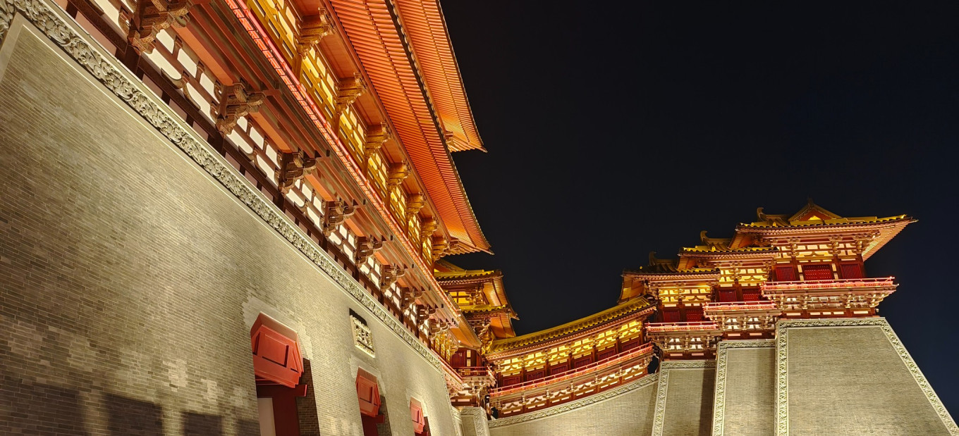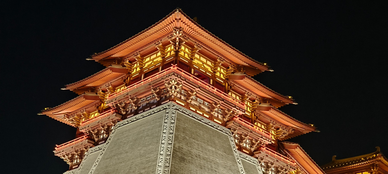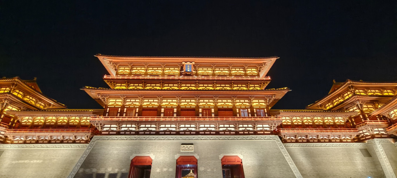 晚上從應天門城樓上眺望遠處的明堂天堂。