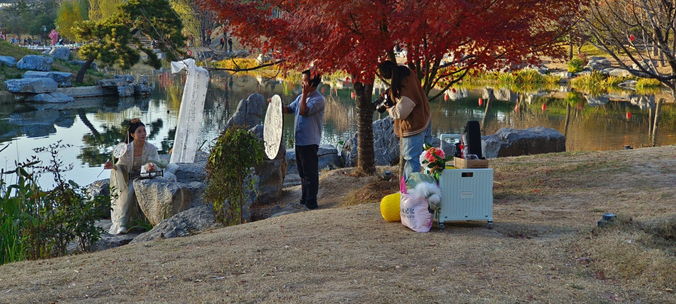九池地是隋唐 洛陽 皇宮內重要的皇家池苑,相當于 北京 的頤和園,是 中國 古代 中國 古代皇家園林的杰出典范,我來的時候還是白天,人已經有不少了,都在拍美美的照片呢。