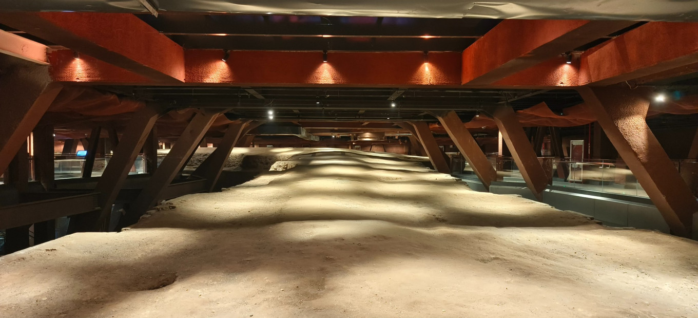 應天門的遺址是埋在地下的,雖然已經看不清具體的樣子了,不過依稀之間還是能感受到那撲面而來淡淡的古風。
