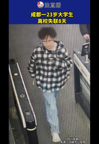 2025年12月14日16時29分,邛崍市公安局羊安派出所接胡某報警稱:其侄子劉某某(男,23歲,四川邛崍市人,成都某高校學生)于2025年12月11日離開學校后失聯,請求幫助。