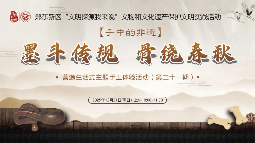 從《營造法式》等關于中國古代建筑的書籍中挖掘內容,創新公共文化服務,2025年12月21日上午,鄭州圖書館【手中的非遺】系列活動將繼續邀請專業老師,以骨頭繞線板制作的體驗活動,帶領廣大讀者了解中國古建筑中常見工具--墨斗的相關知識,學習木工的歷史和傳統技藝等,探尋中國古代建筑的文化底蘊,以實際行動傳承和弘揚中華優秀傳統文化。