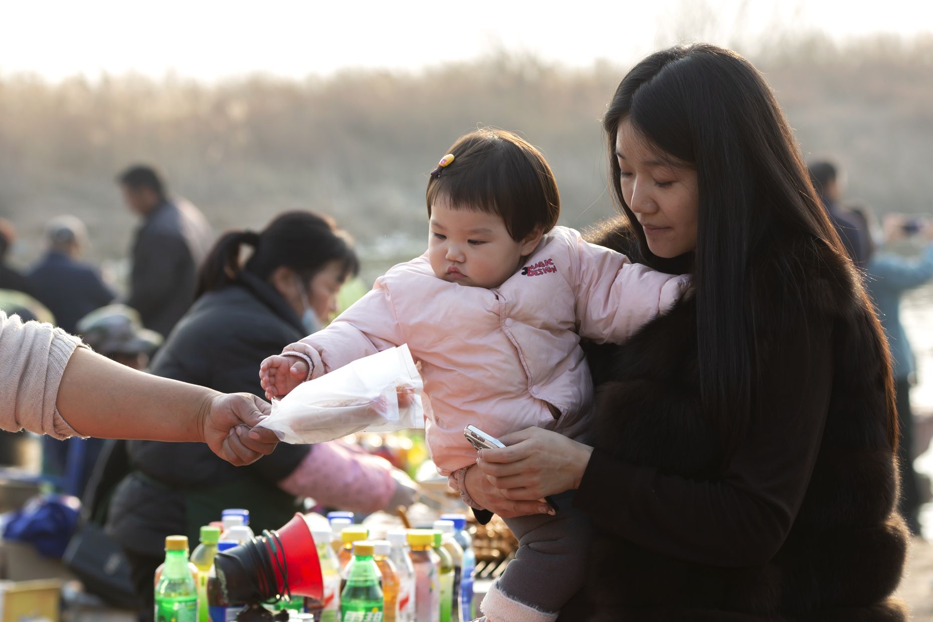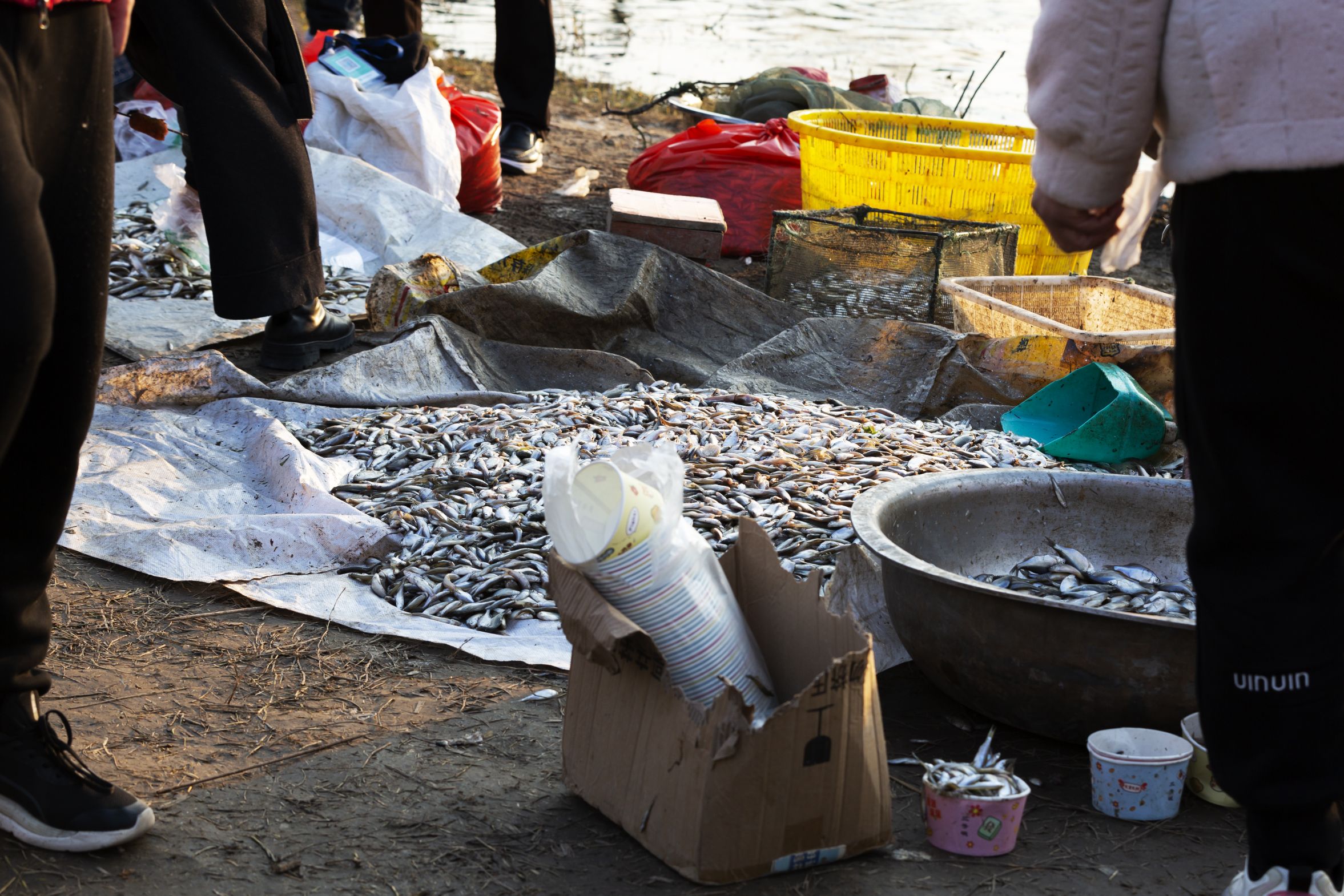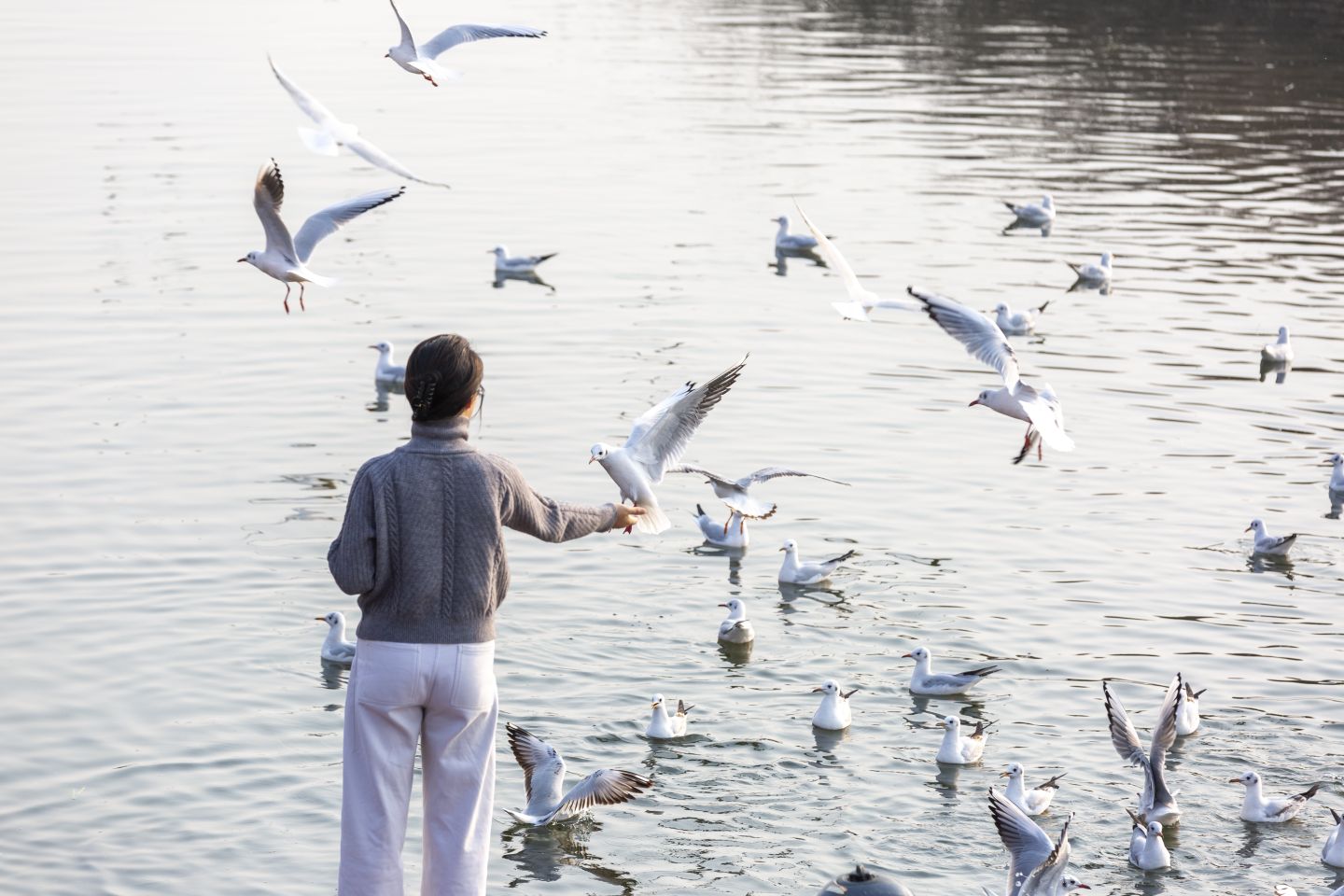 湖畔的石階邊,漁船上的小魚攤總是圍滿了人。銀閃閃的小魚被裝在塑料盆里,是紅嘴鷗最愛的美味,也成了游客與精靈互動的紐帶。人們捏著小魚伸向湖面,紅嘴鷗便扇動著翅膀俯沖而來,羽翼擦過指尖的觸感,讓大人孩子都笑出了聲。而賣魚的攤主忙著遞貨收錢,指尖的老繭摩挲著嶄新的紙幣,這是紅嘴鷗帶來的經濟收入。