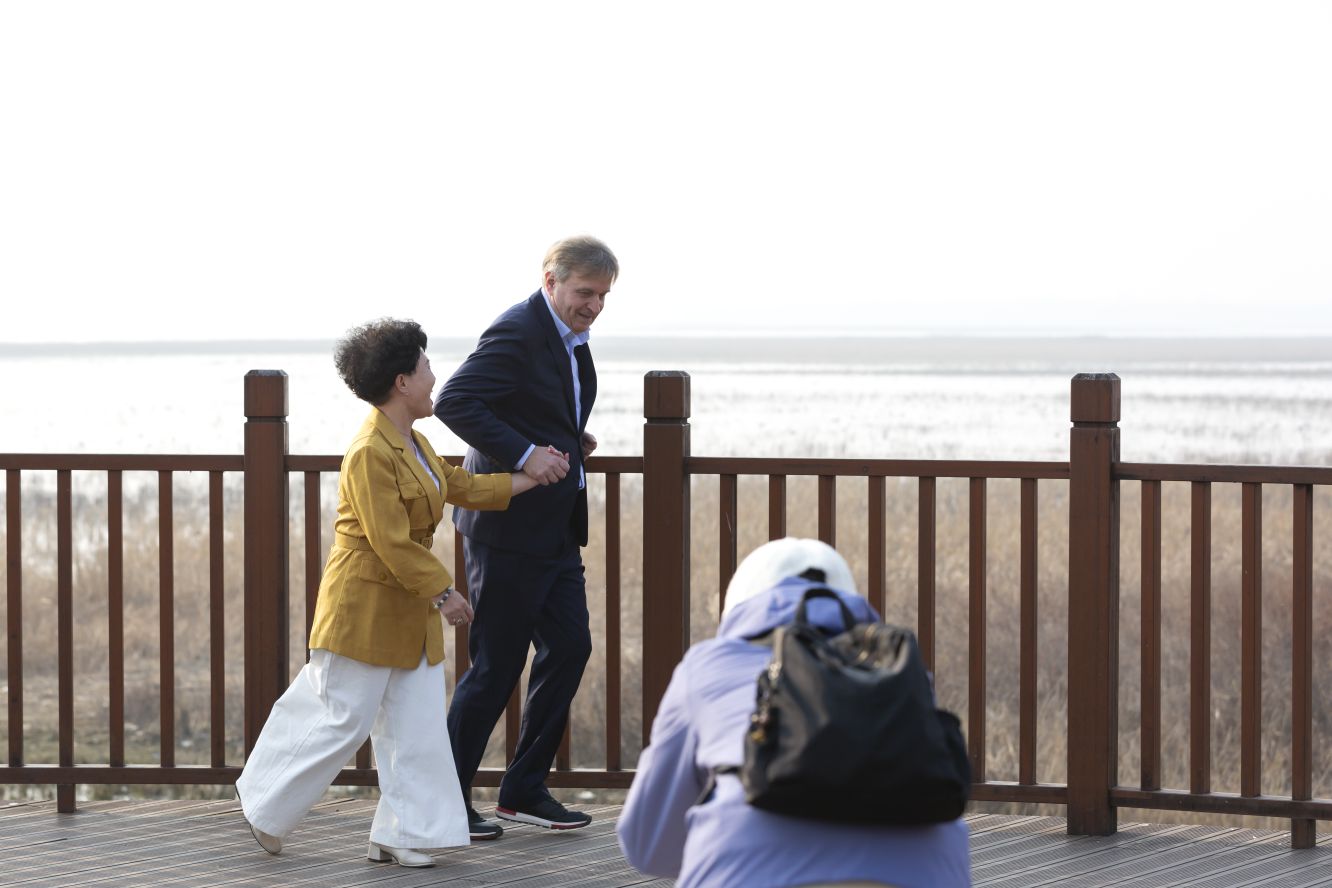 更有國外友人沿著木棧道走來,饒有興致地舉著手機拍攝紅嘴鷗,對著湖光水色比劃著贊嘆的手勢,成為白龜湖別樣的風景。露營的人們支起帳篷,在枯黃的草地上鋪好野餐墊,孩子追著氣球跑,大人靠著折疊椅刷著手機,時光在暖融融的陽光里慢慢流淌。兩位阿姨舉著自拍桿,對著鏡頭比出剪刀手,把白龜湖的冬日盛景藏進相冊里。
