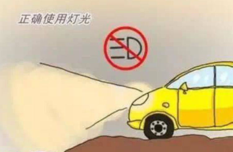 霧天行車應及時打開霧燈、示廓燈或近光燈,如果在高速路上行駛或者霧很濃的情況下,還要打開危險報警閃光燈。切記不要使用遠光燈,因為遠光燈是向上方照的,射出的光線被霧氣漫反射,會在車前形成白茫茫一片,開車時反而什么都看不見了。