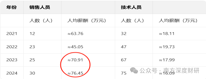 薪酬是大頭,從銷售、研發人員的薪酬變動情況來看,銷售人員規模翻倍增加,且人均薪酬趨勢上行,技術人員薪酬則比較穩定。