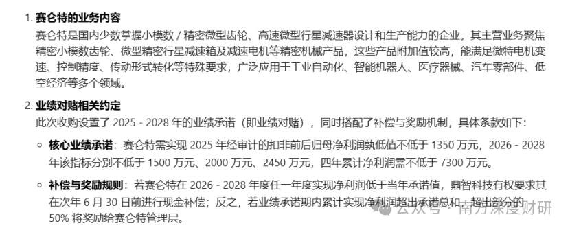為完善產業鏈布局,2025年9月,公司還花了1個億收購了賽侖特51%的股權,賽侖特專注于齒輪、減速箱及減速電機等精密機械產品,應用場景覆蓋工業自動化、智能機器人、醫療器械、汽車零部件等領域。