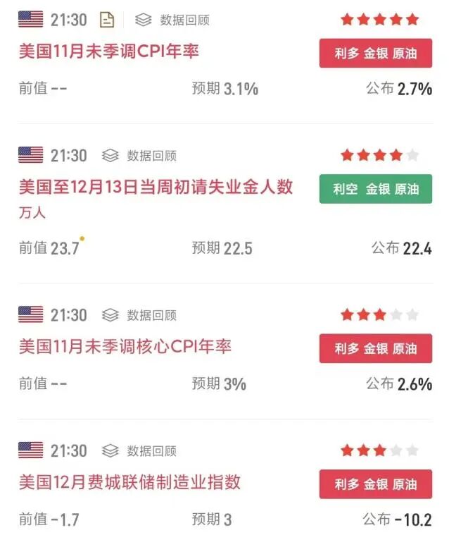 昨晚美國公布的11月CPI同比增長2.7%,核心CPI同比增長2.6%,均大幅低于市場預期。