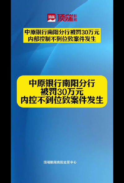 罰單顯示,中原銀行股份有限公司南陽分行的主要違法違規(guī)事實(案由)為:內(nèi)部控制不到位,導致案件發(fā)生。