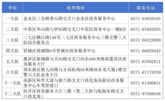 附:鄭州城區處理非機動車、電動車交通違法的位置及聯系電話