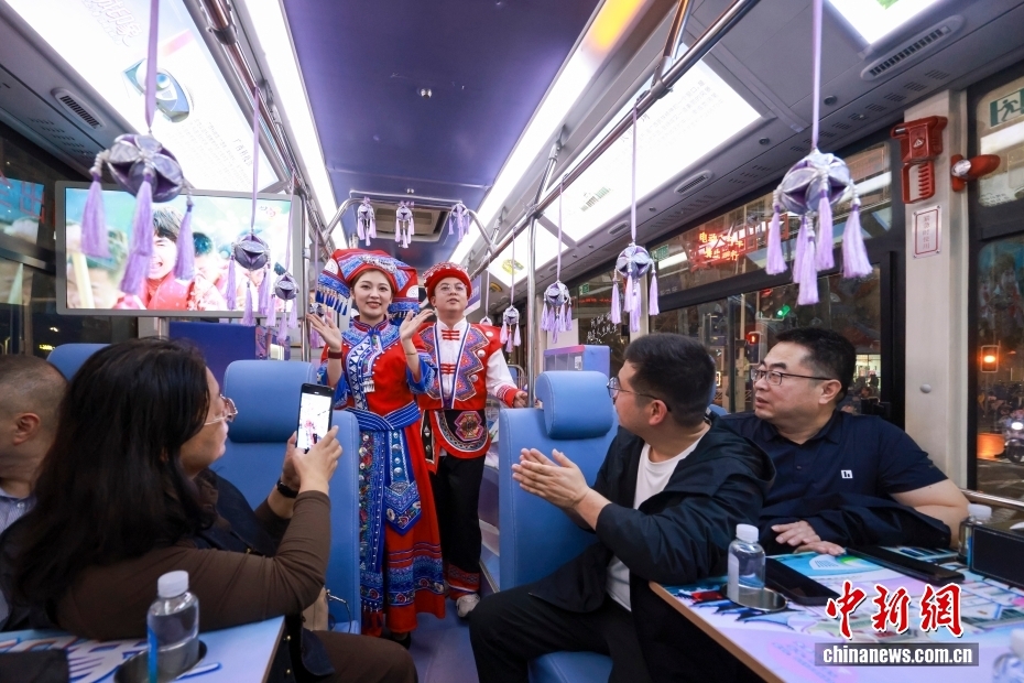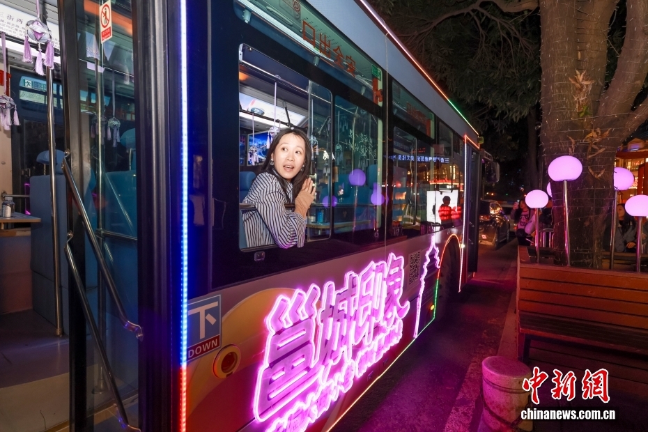 ”近日,記者隨交通運輸部“我的公交我的城”主題采訪團(tuán)走進(jìn)廣西南寧。南寧從2022年獲評“國家公交都市建設(shè)示范城市”以來,充分發(fā)揮定制公交靈活、多樣的優(yōu)勢,結(jié)合本地民風(fēng)民俗,著力突出公交的“廣西元素”和“南寧特色”,實現(xiàn)護(hù)學(xué)、通勤、就醫(yī)、商務(wù)、旅游等多場景覆蓋。圖為12月17日晚,游客乘坐南寧夜游公交。