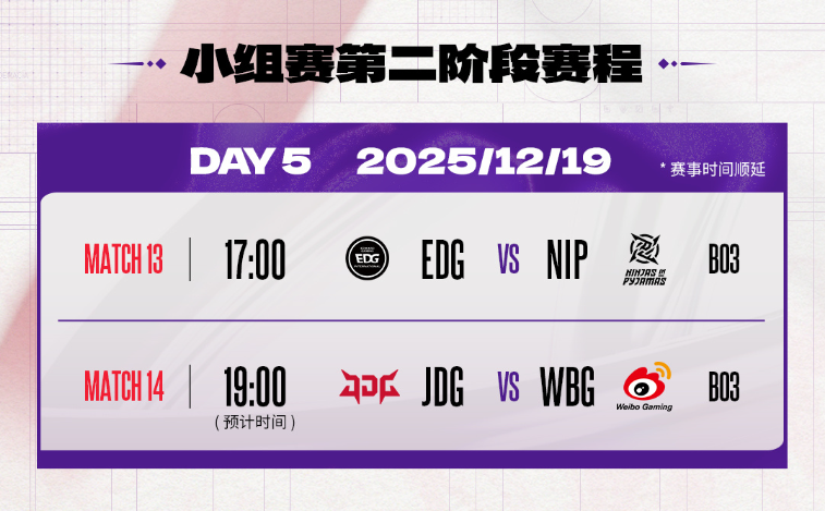 在淘汰掉兩支主播隊伍后,德瑪西亞杯終于進入到了第二階段。本階段就是涅槃組晉級的隊伍,與登峰組的隊伍,一較高下了。12月19日,兩場比賽由EDG對陣NIP,JDG對陣WBG帶來,誰又會笑到最后呢,讓我們拭目以待。