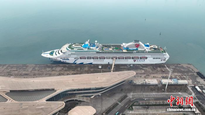12月19日,搭載千余名旅客的“夢想”號郵輪靠泊天津國際郵輪母港。(東疆邊檢站供圖)