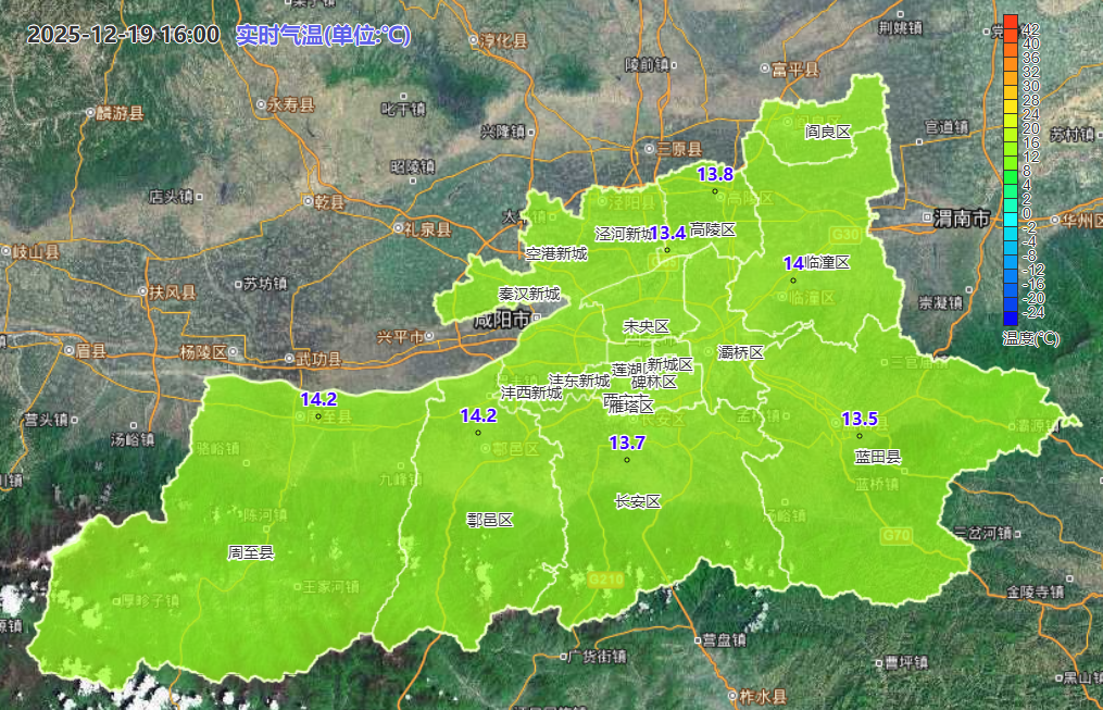 12月19日16時西安市氣溫實況色斑圖