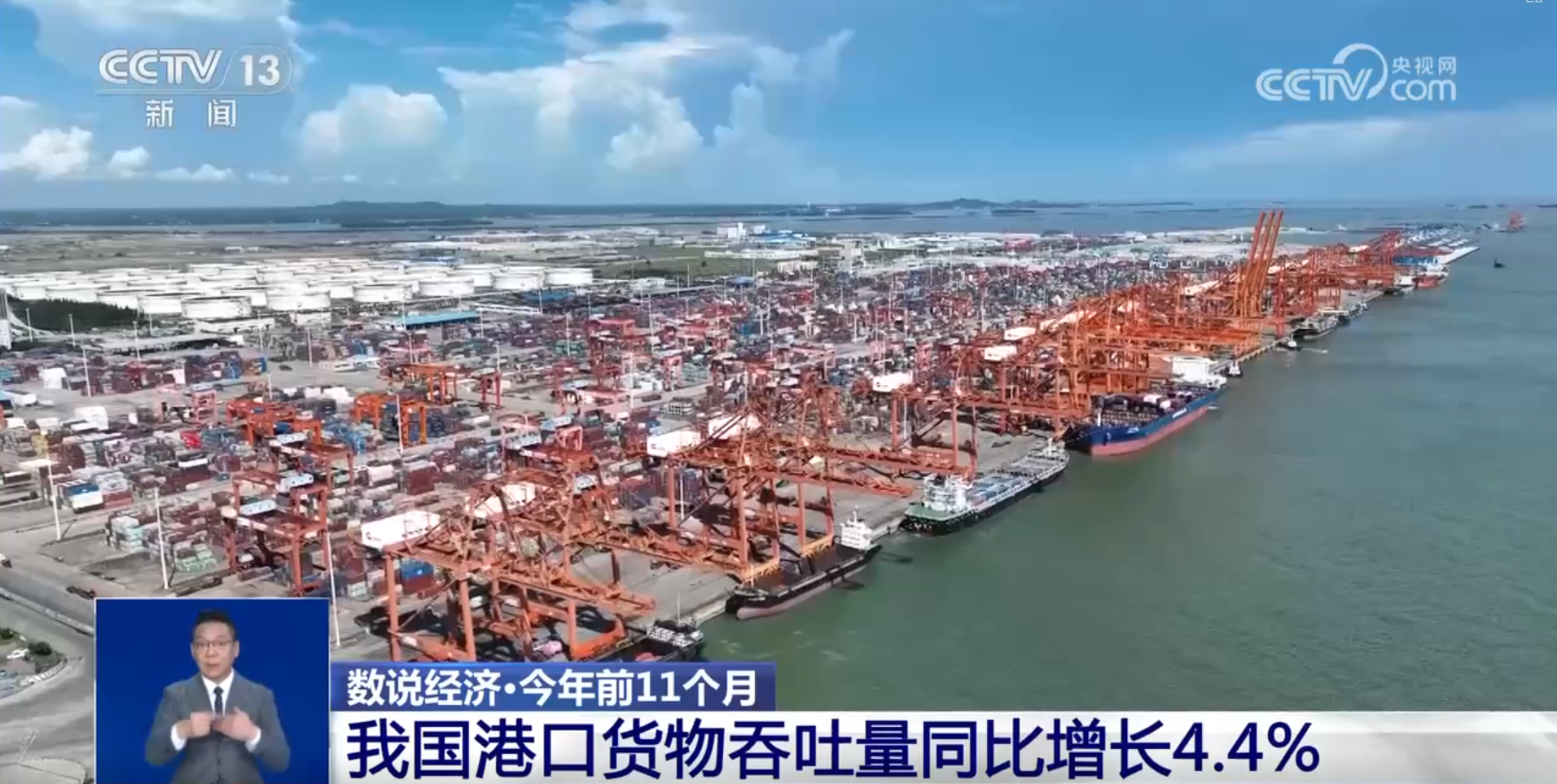 今年前11個(gè)月我國港口貨物吞吐量同比增長4.4%