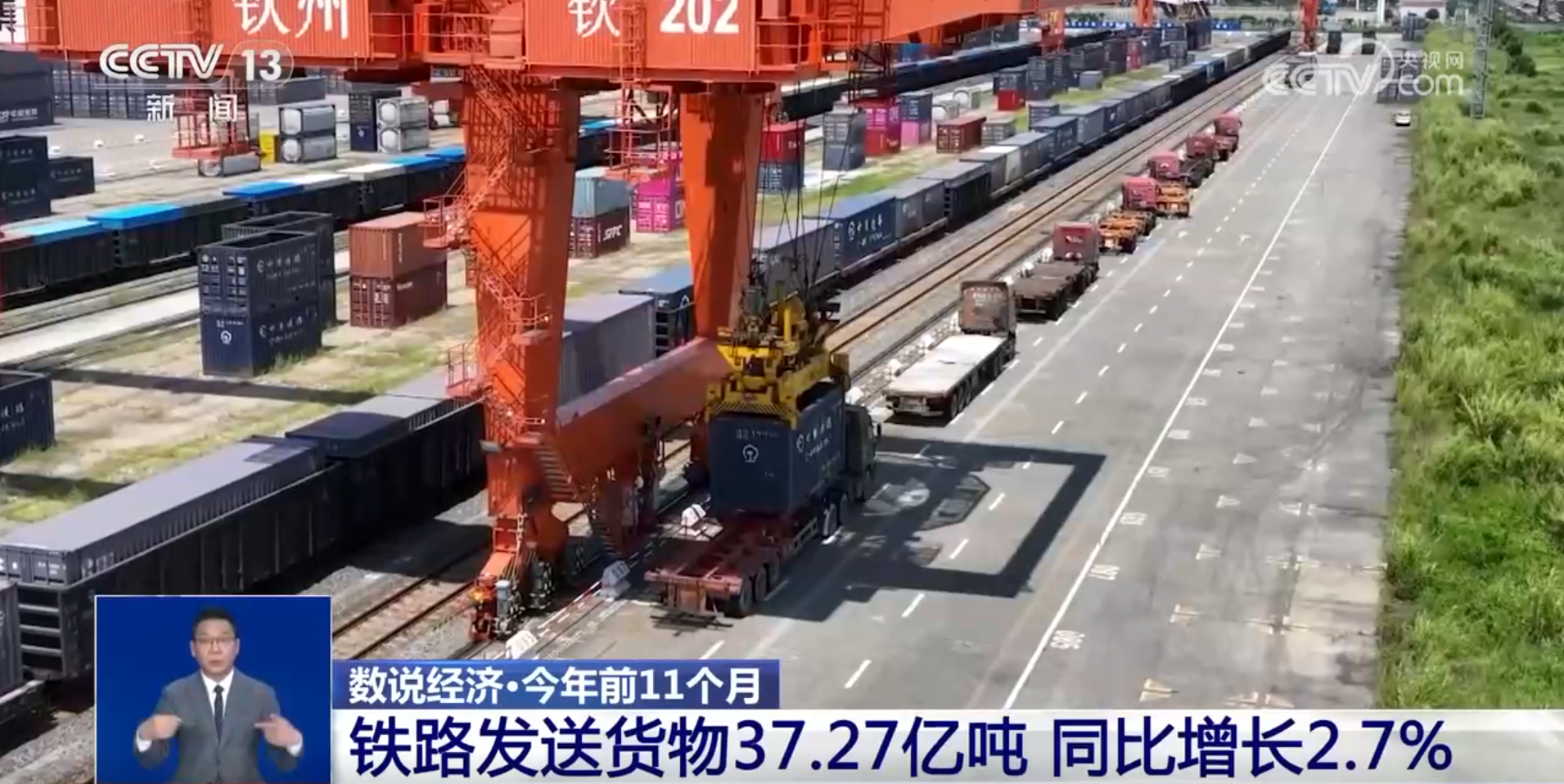 今年前11個(gè)月鐵路發(fā)送貨物37.27億噸同比增長2.7%