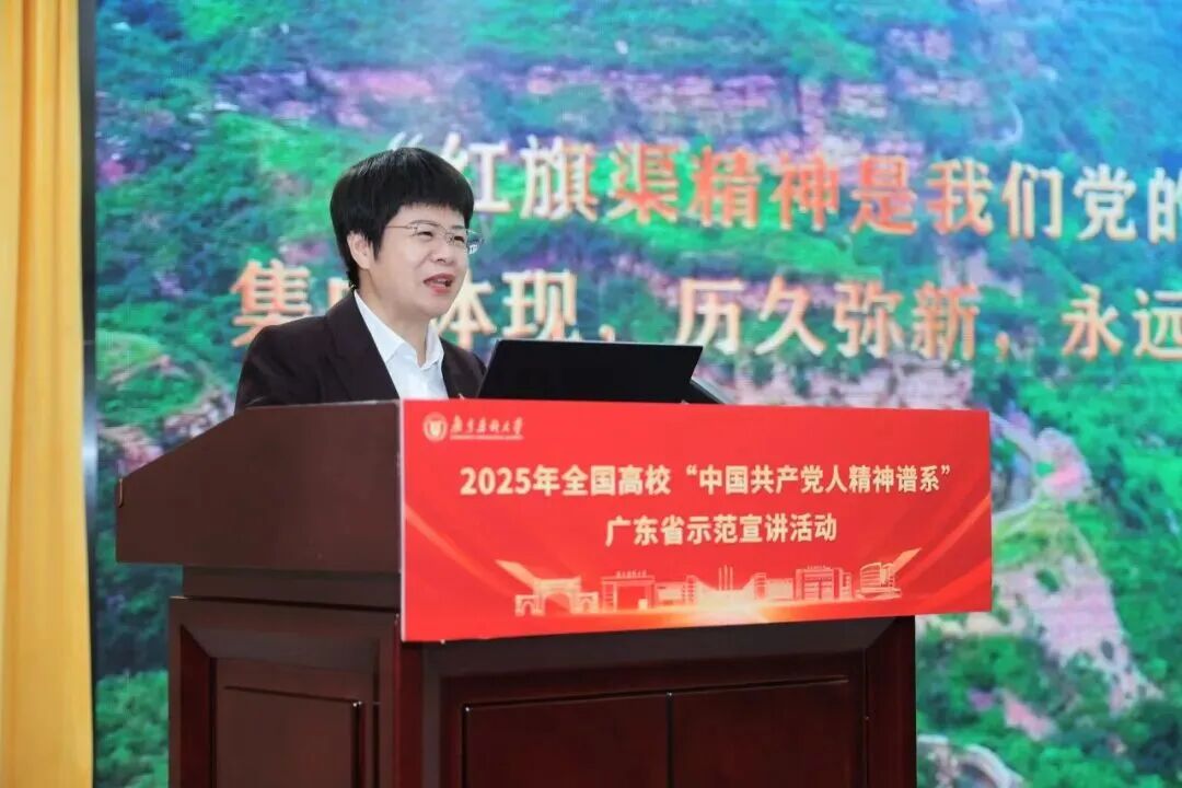 12月11日,由教育部思想政治工作司指導,中共廣東省委教育工委、廣東省教育廳主辦,廣東藥科大學承辦的2025年全國高?!爸袊伯a黨人精神譜系”廣東省示范宣講活動在廣州隆重舉行。河南紅旗渠干部學院黨委委員、副院長陳曉萍受邀作為核心宣講專家,以《紅旗渠與紅旗渠精神》為題,為廣州大學城10所高校的500余名師生,深度解讀紅旗渠精神作為中國共產黨人精神譜系重要組成部分的深刻內涵與時代價值。