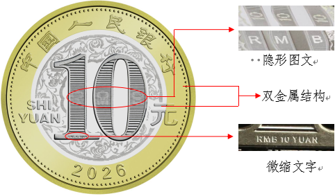 1.2026年賀歲雙色銅合金紀念幣公眾防偽特征