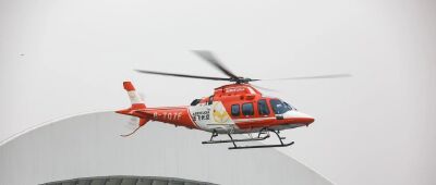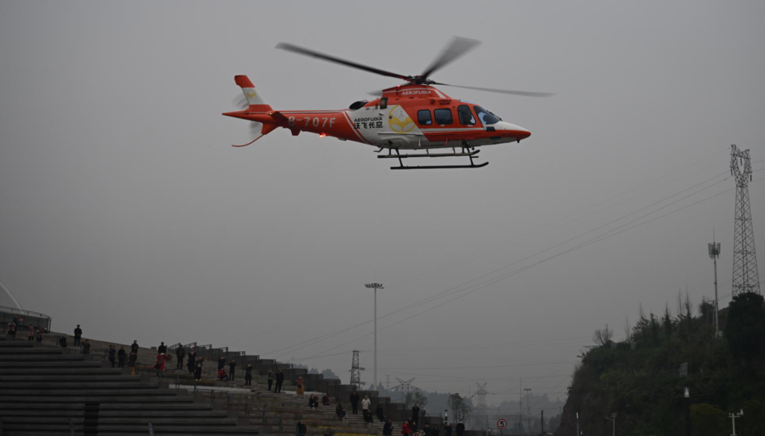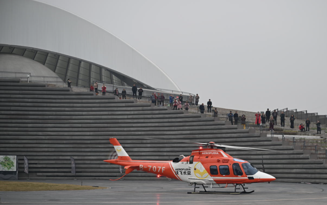 ▲沃飛長空運營的直升機從安岳石窟數展中心起飛