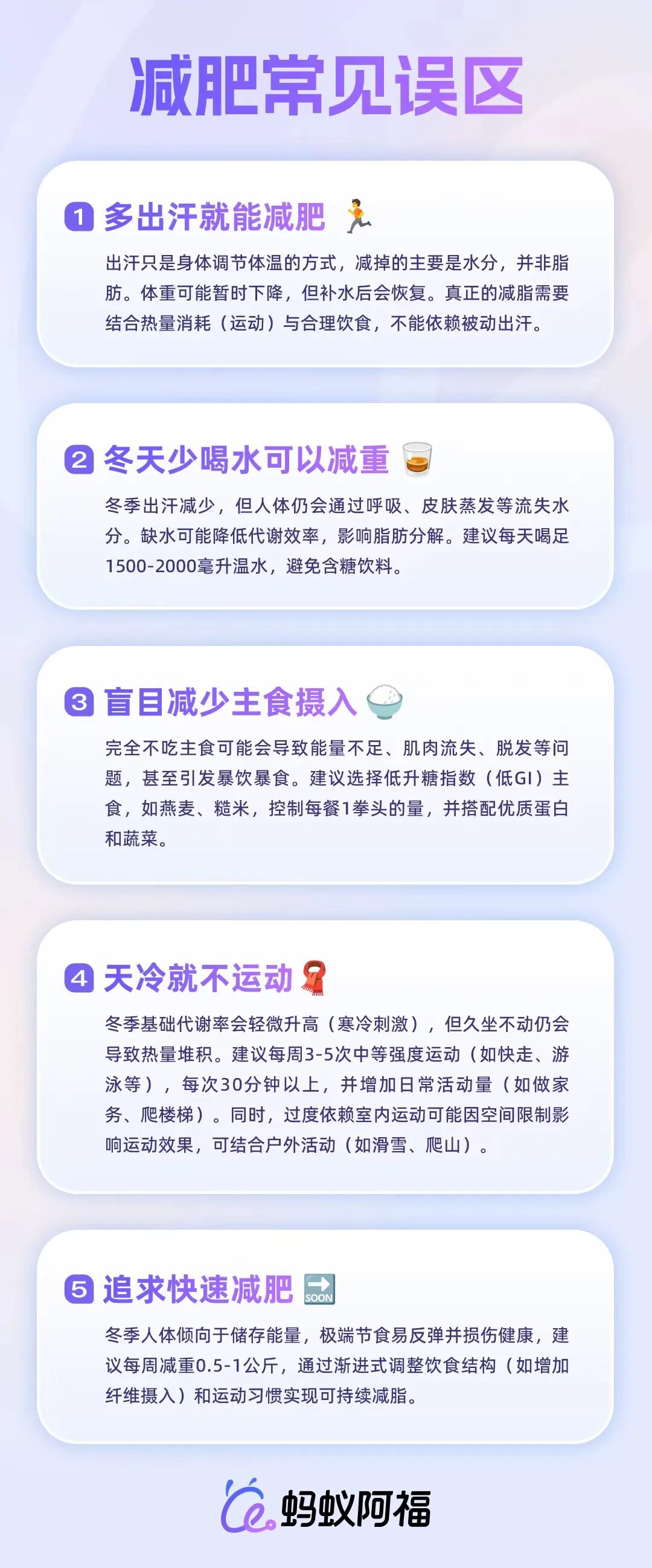 用阿福連接手環(huán)等智能設(shè)備,隨時(shí)全面掌握睡眠質(zhì)量、運(yùn)動數(shù)據(jù)等狀態(tài),提供改善建議,減少因睡眠不足導(dǎo)致的食欲紊亂。定期分析體重、體脂變化趨勢,避免因冬季代謝波動產(chǎn)生焦慮。
