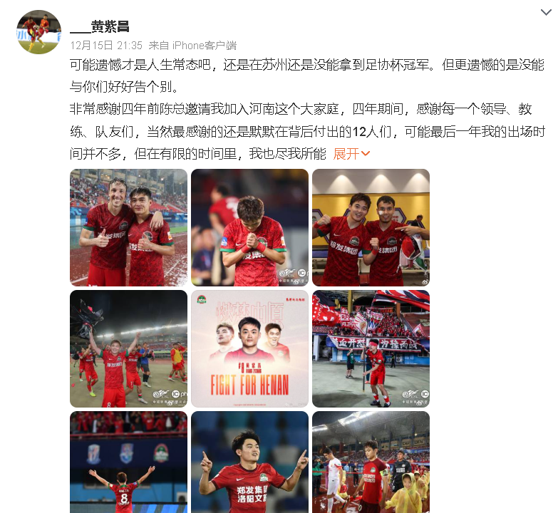 他說:“可能遺憾才是人生常態,可是在蘇州還是沒能拿到足協杯冠軍。但更遺憾的是沒能與你們好好告個別。非常感謝四年前陳總邀請我加入河南這個大家庭,四年期間,感謝每一個領導、教練、隊友們,當然最感謝的還是默默在背后付出的12人,可能最后一年我的出場時間并不多,但在有限的時間里,我也盡我所能來幫助到球隊,可能有時候我的能力也沒有達到大家的期望,但我保證這四年中不管在訓練中還是比賽上,我都已經全力以赴,付出了我的所有去幫助球隊贏球!最后還是很高興這四年能在河南完成個人河南百場。