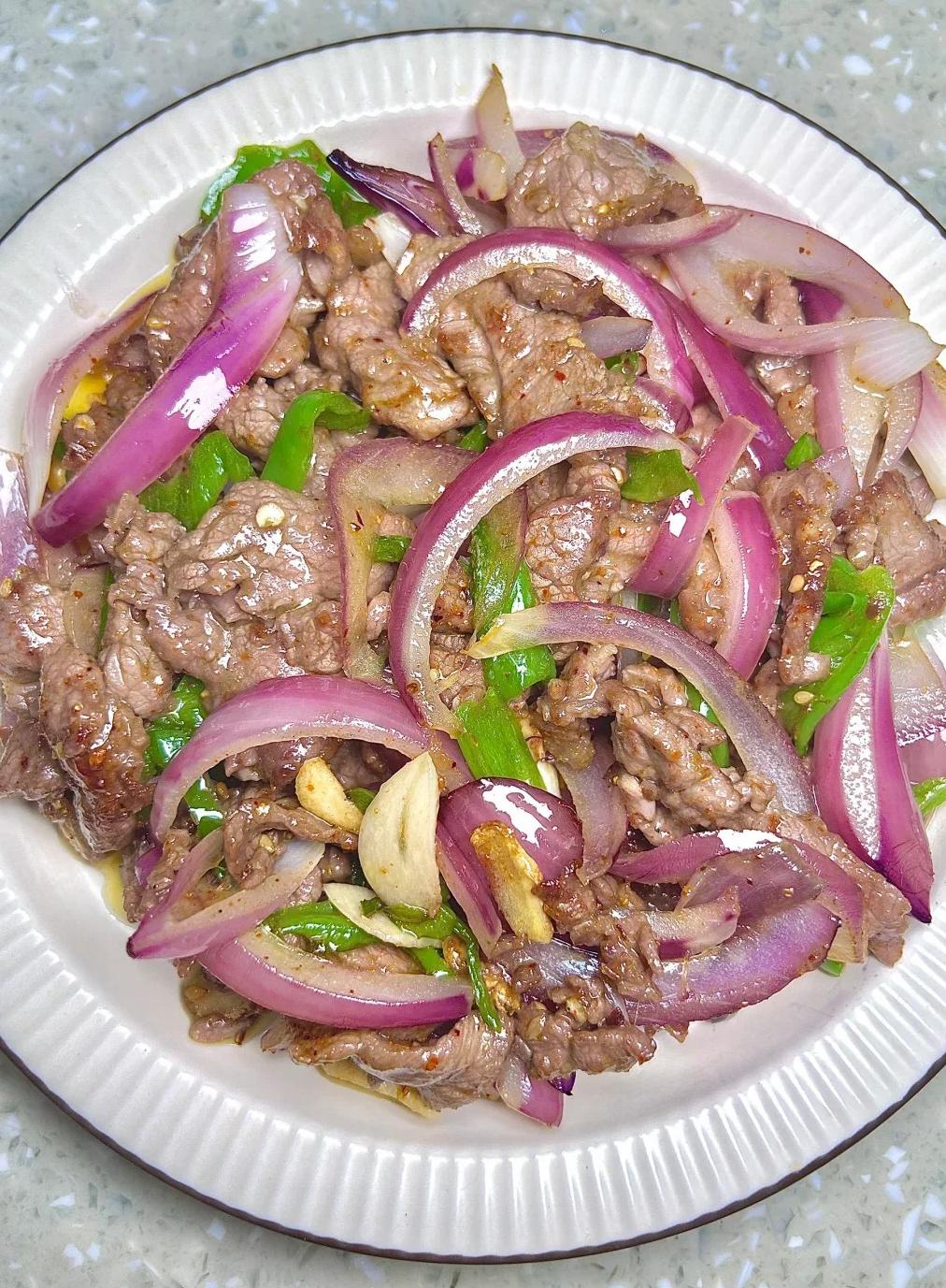 炒好的牛肉,嫩滑入味。青椒脆甜,洋蔥辛香回甘。顏色也好看。是一道非常下飯的快手菜。注意,牛肉雖好,但畢竟是紅肉。一周吃兩三次即可,每次巴掌大一塊肉就夠了。
