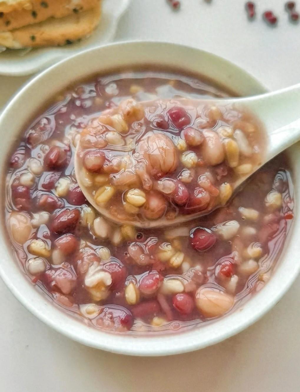 這碗粥,用料有點“雜”。紅豆、花生、糯米、燕麥。聽著像八寶粥。但用意不同。