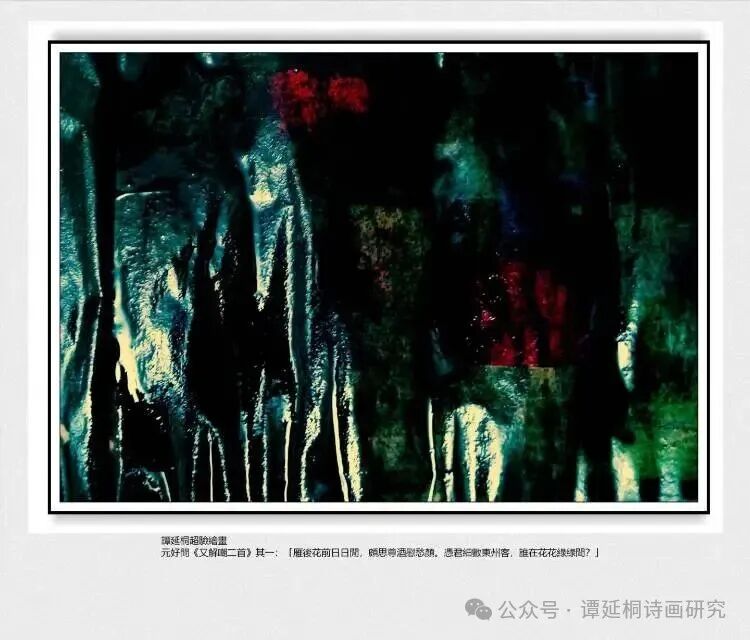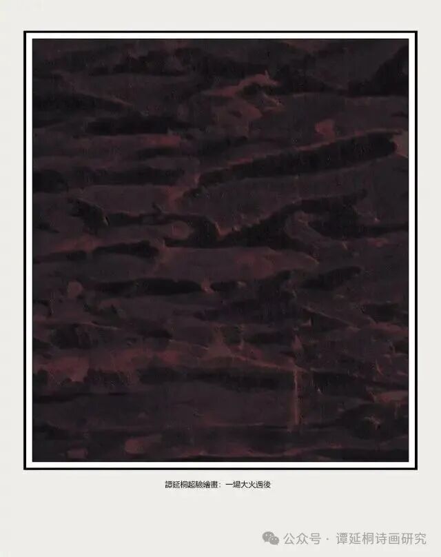 相較于古典文人畫的隱逸山水,譚延桐的超驗繪畫剝離了具體文人意象(如梅蘭竹菊),轉(zhuǎn)而以純粹形式直抵精神本源。他保留了“寫意”內(nèi)核,卻以更具張力的現(xiàn)代視覺語法(如滴灑、刮擦、厚涂)重構(gòu)“意”的表達,使“天人合一”脫離舊有文人語境,獲得當(dāng)代心靈共鳴的可能。