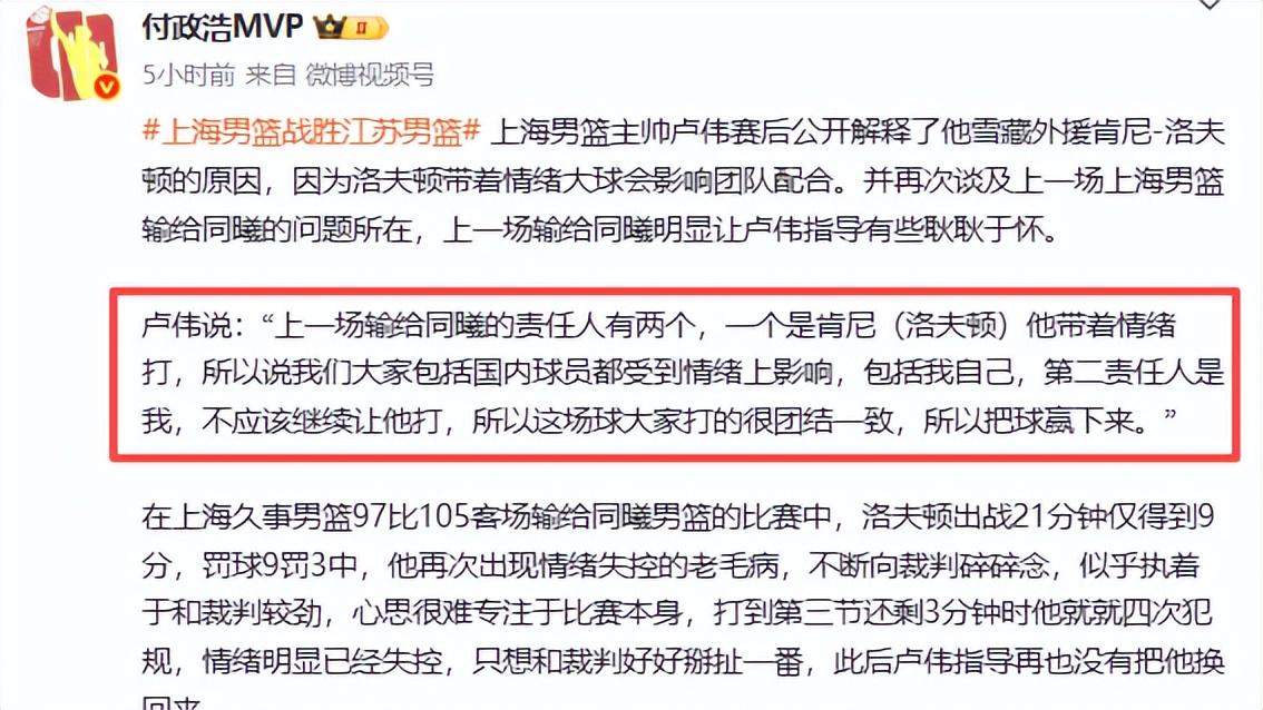 賽后盧偉道出了原因,也可以說是盧偉在新聞布會批評了洛夫頓,再次對他進行敲打。而事實上盧偉雪藏他,就是對洛夫頓實行了“敲打教育”,只是不知效果如何,這得看洛夫頓日后的表現了。