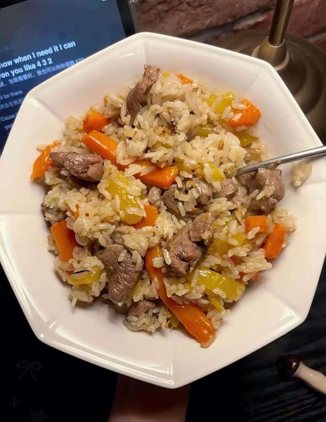 如果說湯是滋潤,那這鍋羊肉手抓飯就是扎扎實實的能量來源。羊肉性溫,能補氣血、御風寒,配上甜絲絲的胡蘿卜和吸飽湯汁的米飯,飯菜肉一鍋出,滿屋飄香,吃一口就能量滿滿,是應對嚴寒最實在的吃法。