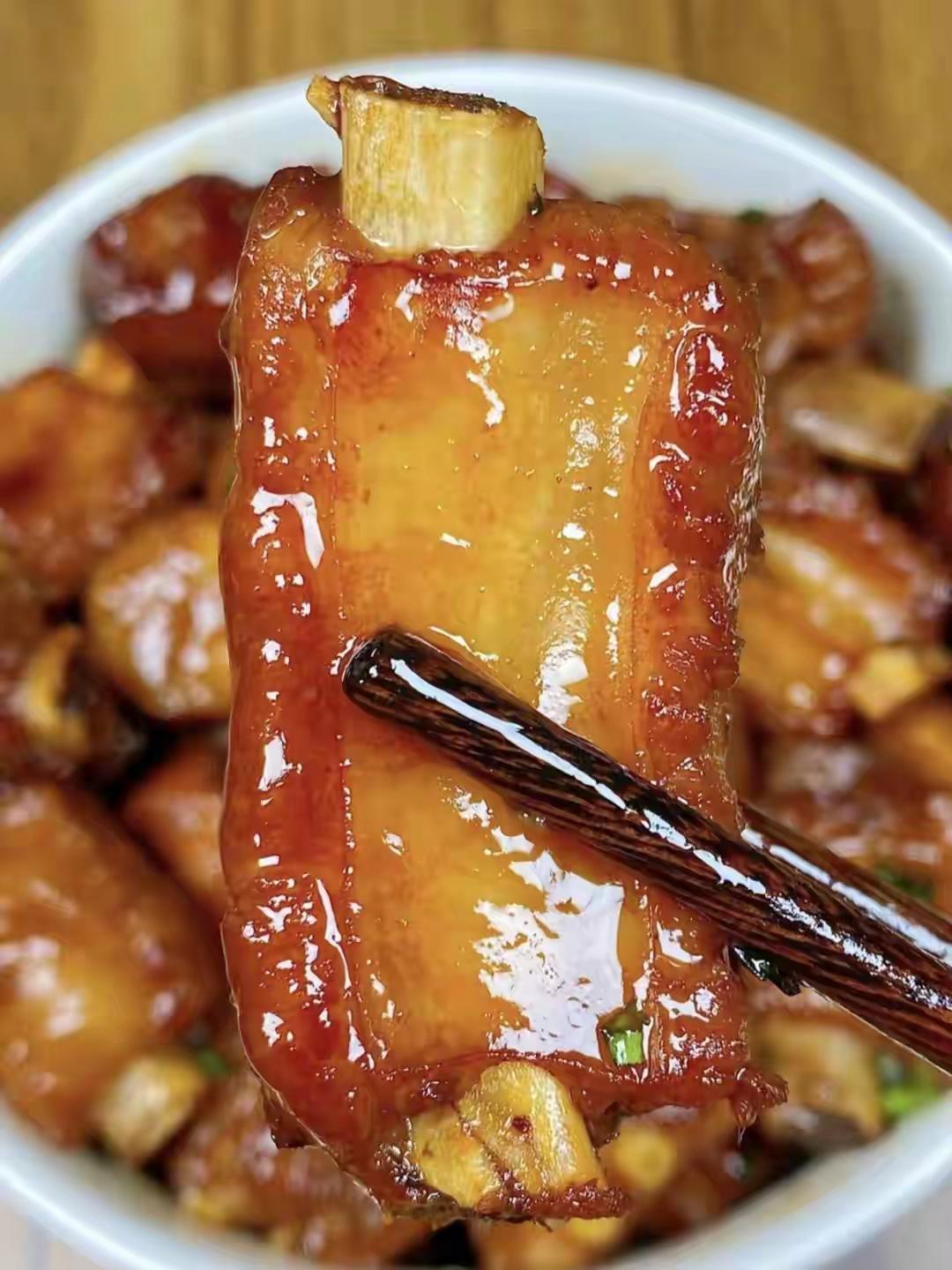 肉菜是冬至餐桌的壓軸。板栗燒排骨,聽著就暖和。板栗粉糯香甜,排骨酥爛入味,湯汁濃稠油亮,是能當“硬菜”端上桌的,吃一塊,渾身都添力氣。