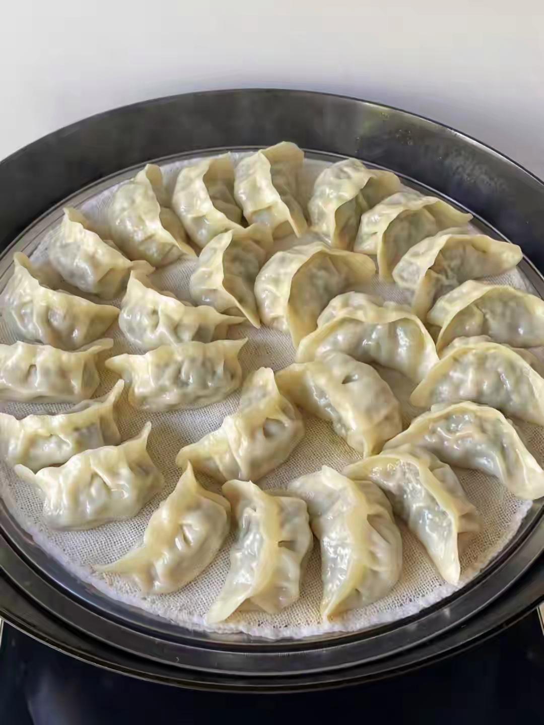 3. 上鍋蒸熟:蒸屜刷油或墊蒸布,餃子碼好,留點空隙。水開上鍋,大火蒸12-15分鐘,關火燜兩分鐘再開蓋。