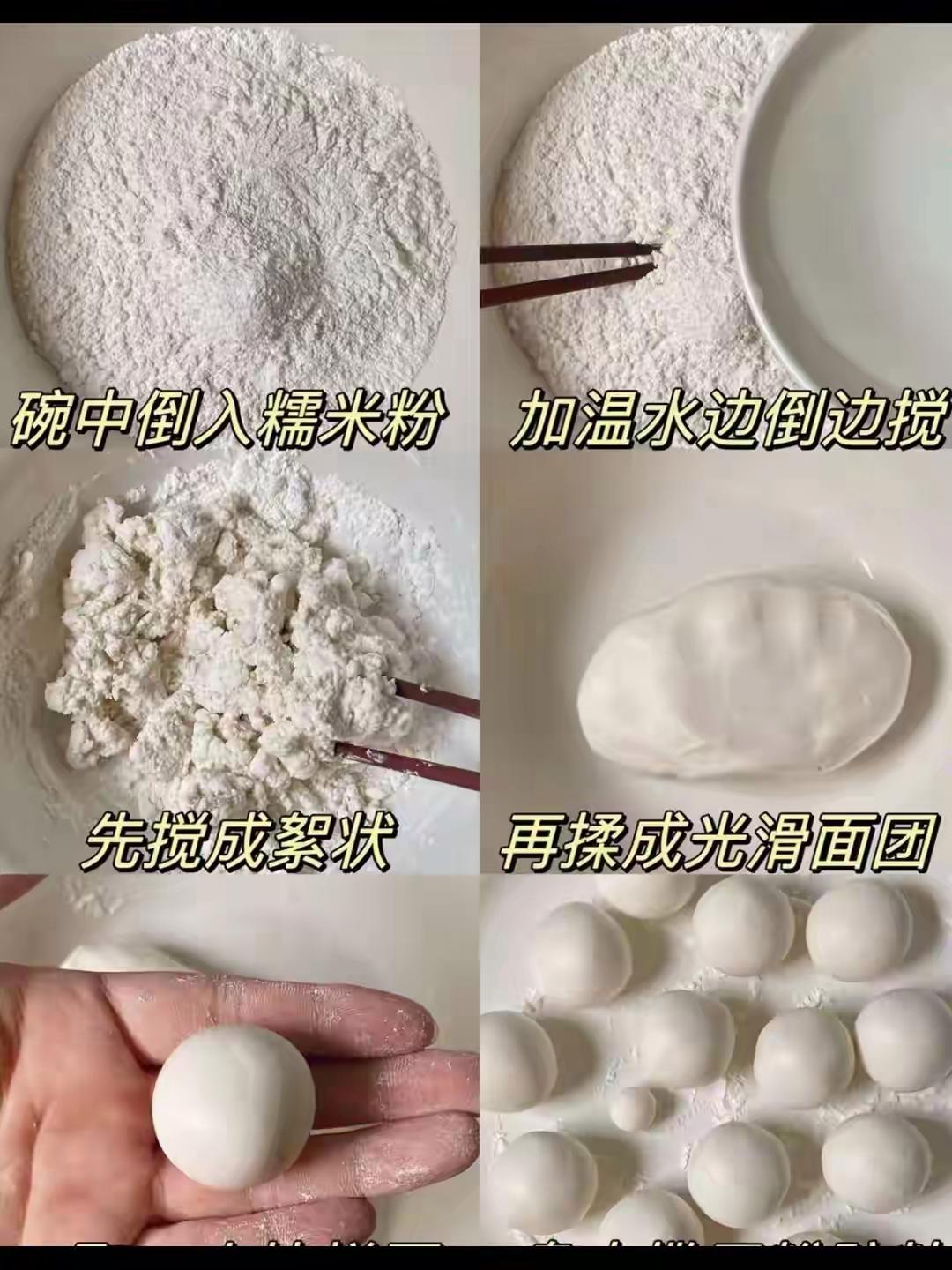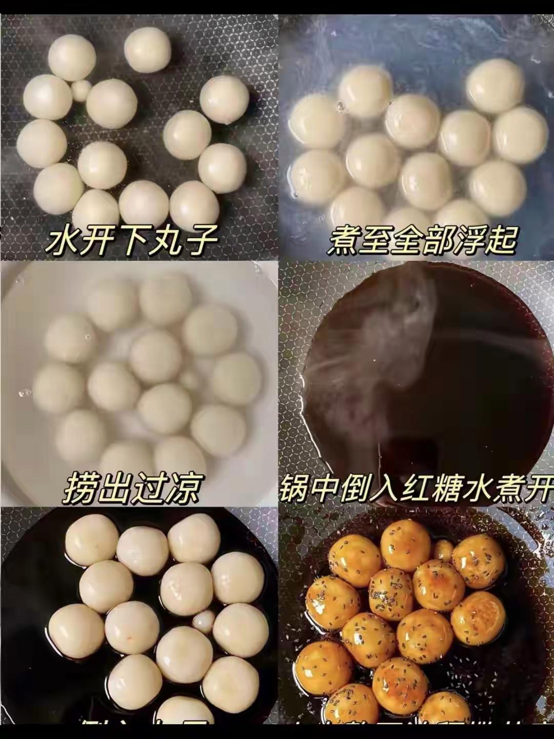 3. 煮制享用:鍋里水燒開,下湯圓,用勺子推推別粘底。煮到湯圓全都浮起來,胖乎乎的就好了。碗底提前放一小塊紅糖和兩片姜,用煮湯圓的熱湯沖開,再把湯圓撈進來。