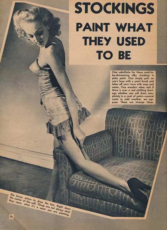 而得益于日新月異的材革命,女士腳上的襪子一時(shí)間竟有了百花齊放的姿態(tài):從傳統(tǒng)的柔美絲綢到新興閃亮的人造絲,從溫暖實(shí)用的羊毛到輕便透氣的萊爾棉,什么雙股雪紡半雪紡四五六七八股紗,什么運(yùn)動(dòng)襪腳踝襪針織綁腿,差不多當(dāng)各色各類,各有用途的長(zhǎng)襪設(shè)計(jì),“野蠻生長(zhǎng)”到剛在時(shí)鐘紋和夏季透氣襪中迎回了漂亮的蕾絲裝飾時(shí),1937年,聚六甲基己二酰胺,既原始的尼龍材料正式面世,因透氣透明又強(qiáng)度極高,作為首款真正意義上的絲襪,一經(jīng)推出便風(fēng)靡世界,之后更是因?yàn)槎?zhàn)爆發(fā),尼龍材料被軍事管控而讓愛美的大眾一襪難求。