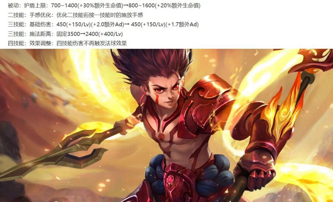 哪吒削弱:被動(dòng)護(hù)盾在前期變厚,在后期變薄,21連招手感更流暢,3技能的后期傷害降低,3技能的施法范圍縮小,4技能不再觸發(fā)法球效果。